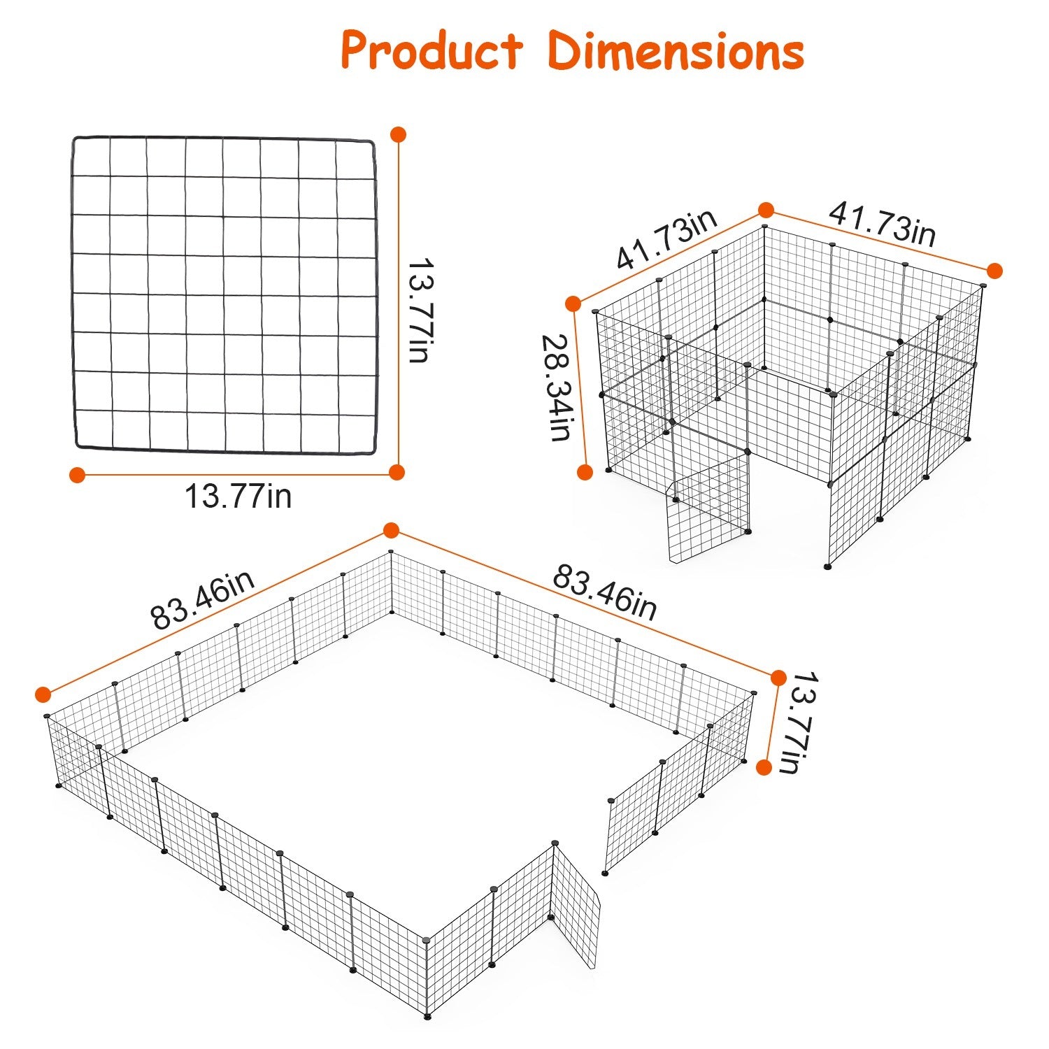 - *Flexible Set-up*: Flexible-assembly metal wire pet fence allows you to build a customized kingdom and playground for your beloved pet according to the available room,pet’s figure and personal aesthetic. You can even purchase more products to set up storage place based on the pet fence,holding snacks,toys or other pet supplies.