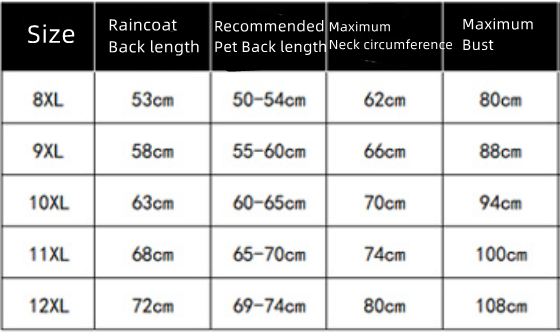 Available in a variety of sizes and eye-catching colors, including blue and yellow, our poncho is designed to accommodate dogs of different shapes and sizes. Whether you have a playful pup or a larger companion, we have the perfect fit for them. With sizes ranging from 8XL to 12XL, your dog will be ready for any adventure, rain or shine!
